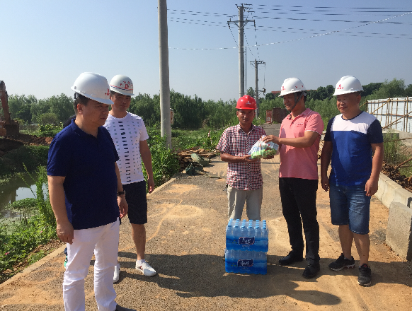 時(shí)下正值三伏天,暑氣逼人,持續(xù)高溫給施工現(xiàn)場(chǎng)一線(xiàn)的員工帶來(lái)了嚴(yán)峻的考驗(yàn),為確保安全生產(chǎn)以及一線(xiàn)人員的人身安全和身體健康,公司總經(jīng)理徐遠(yuǎn)征、副總經(jīng)理徐家富領(lǐng)導(dǎo)班子及工程管理部和項(xiàng)目經(jīng)理們組成慰問(wèn)組前往各施工現(xiàn)場(chǎng)精心開(kāi)展“情系一線(xiàn),夏送清涼”的慰問(wèn)活動(dòng),深入到公司污水泵站項(xiàng)目部、盟盛項(xiàng)目部、外環(huán)路、常貴路、常貴南路項(xiàng)目部、仟島項(xiàng)目部、南湖五期項(xiàng)目部、世茂項(xiàng)目部等施工現(xiàn)場(chǎng),為奮戰(zhàn)在一線(xiàn)的員工送去了防暑降溫用品,把清涼送到員工們的心坎上。