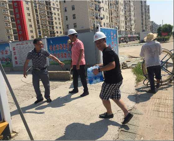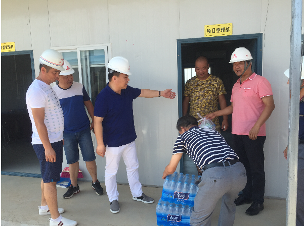 “現(xiàn)在天氣炎熱,大家要注意高溫施工安全,做好防暑降溫工作!”每到一處,公司總經(jīng)理和副總就耐心跟施工現(xiàn)場(chǎng)人員叮囑一番,同時(shí)要求相關(guān)負(fù)責(zé)人千方百計(jì)做好員工的后勤保障工作,加強(qiáng)對(duì)飲用水、食品和工地食堂衛(wèi)生管理,確保一線(xiàn)人員身體健康。慰問(wèn)組人員親手把礦泉水、藥品等防暑降溫用品送到施工現(xiàn)場(chǎng)人員手上,施工現(xiàn)場(chǎng)負(fù)責(zé)人一致表示,將按照集團(tuán)公司領(lǐng)導(dǎo)的要求,認(rèn)真做好施工現(xiàn)場(chǎng)防暑降溫工作和安全生產(chǎn)工作,保證工程各項(xiàng)工作的順利開(kāi)展。