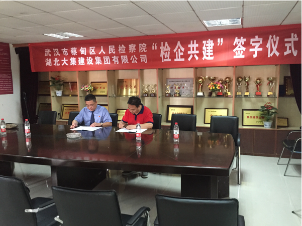 隨后武漢市蔡甸區(qū)人民檢察院與湖北大集建設(shè)集團(tuán)有限公司在集團(tuán)公司會(huì)議室舉行“檢企共建”簽約和授牌儀式。共同簽署了《檢企共建協(xié)議書》。集團(tuán)公司董事長(zhǎng)徐濤、總經(jīng)理徐遠(yuǎn)征對(duì)蔡甸區(qū)檢察院給予企業(yè)的幫助和支持表示感謝,并號(hào)召公司全體員工要提高思想認(rèn)識(shí),在蔡甸區(qū)人民檢察院的指導(dǎo)下,認(rèn)真開(kāi)展預(yù)防職務(wù)犯罪工作,確保企業(yè)正常經(jīng)營(yíng)活動(dòng)的有序開(kāi)展。