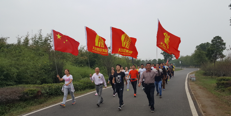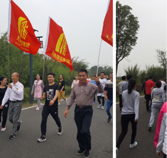 “1234,1234,大集,大集,齊心協(xié)力,奮勇向前,只爭朝夕……”整齊劃一的吶喊聲和腳步聲迎面而來,鮮艷奪目的企業(yè)司旗,年輕似火的團(tuán)隊成員一一盡現(xiàn)眼簾,大家表現(xiàn)得十分活躍,動作協(xié)調(diào),緊密配合,處處可以感受到團(tuán)隊合作的力量。在這里,在此時,正在如火如荼的上演一場熱身賽。這里是后官湖濕地公園的跑道上,也是湖北大集建設(shè)集團(tuán)為參加本月底半馬比賽而組織的集結(jié)地。