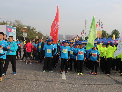 紅旗招展,彩旗飄飄,集團(tuán)公司60人健康跑隊伍浩浩蕩蕩邁入前方檢錄點