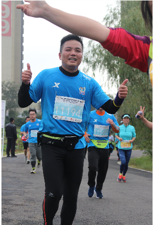 集團(tuán)公司董事長徐濤同志,賽程7公里處,步伐有力,體能充沛。