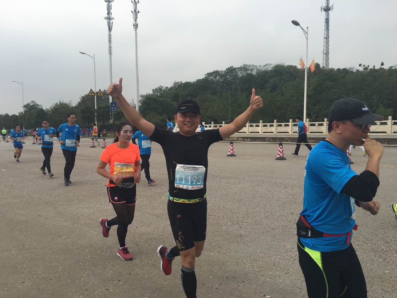 雖然下了一周的雨而且此天氣將會持續(xù)幾天,可是仍然阻擋不了大家參賽的勁頭和熱情,天不亮就早早起床直赴公司大院集合整裝待發(fā),所有參賽人員到齊后乘坐巴士前往比賽主會場提前進行拉伸運動。我們到達目的地時天還剛蒙蒙亮,氣溫也很低,但是已經(jīng)聚集了不少參賽人員及后勤保障、治安人員,個個精神抖擻、容光煥發(fā),都期待著順利地跑出好成績!