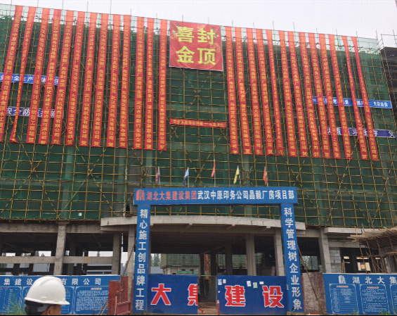 2017年6月27日,歷時(shí)一年時(shí)間,在湖北大集建設(shè)集團(tuán)重質(zhì)量、保安全、趕工期、抓進(jìn)度的配合下,中原印務(wù)1#樓主體順利封頂。集團(tuán)董事長(zhǎng)徐濤、總經(jīng)理徐遠(yuǎn)征、副總經(jīng)理徐家富及該項(xiàng)目重要骨干陪同中原印務(wù)董事長(zhǎng)及其公司高層領(lǐng)導(dǎo)共同見證這一喜慶時(shí)刻。