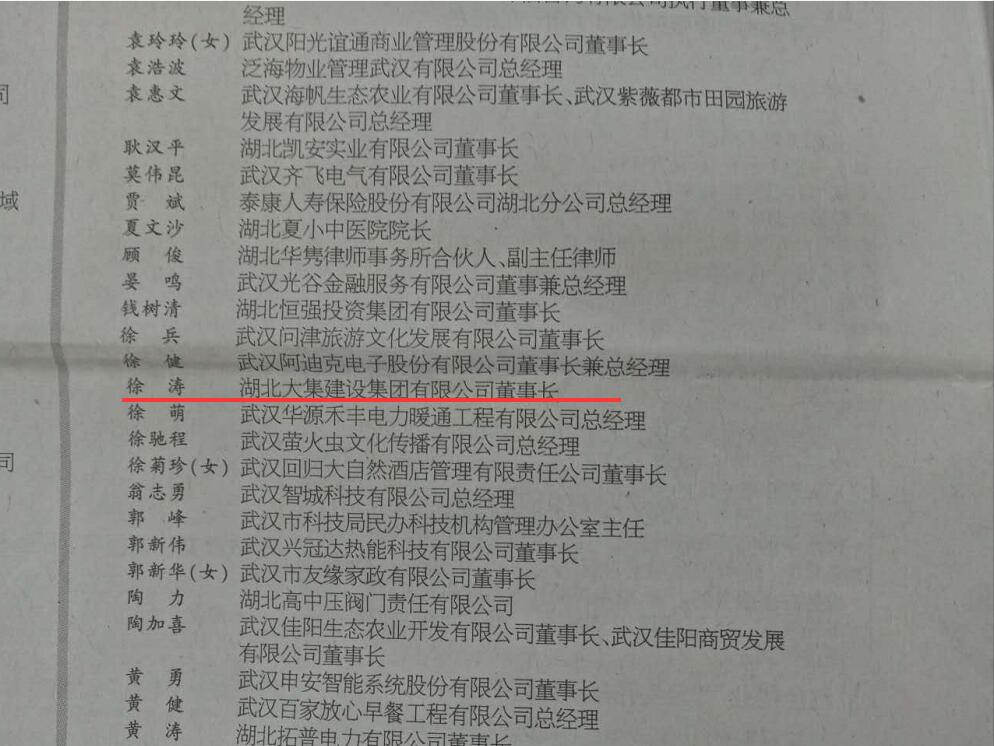 8月8日,武漢市工商業(yè)聯(lián)合會第十四次代表大會隆重召開,湖北大集建設集團董事長徐濤當選為總商會第十四界執(zhí)行委員!