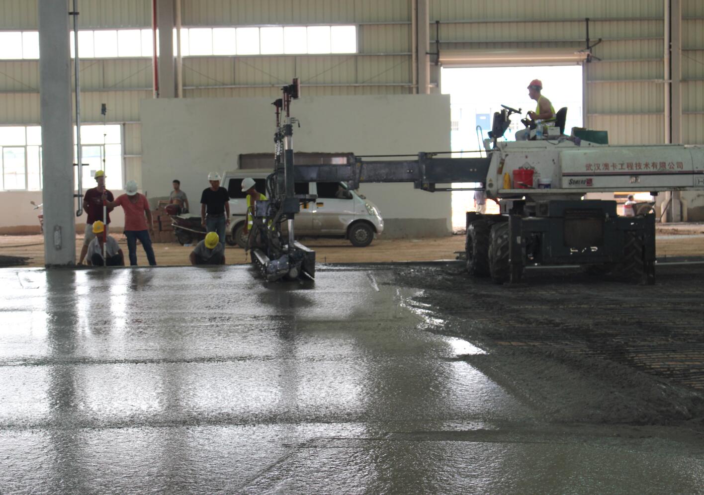 億和中建鋼構項目率先在地平混凝土現(xiàn)場引進激光振坪儀和磨光機,不僅在效率上大大縮短了施工時間,降低了人工成本,更是在效果上達到了比人工更為精準的技藝——混凝土的平整度、密實度、觀感度以及面層金剛砂顆粒分布度優(yōu)良,高低差控制在3~4mm。