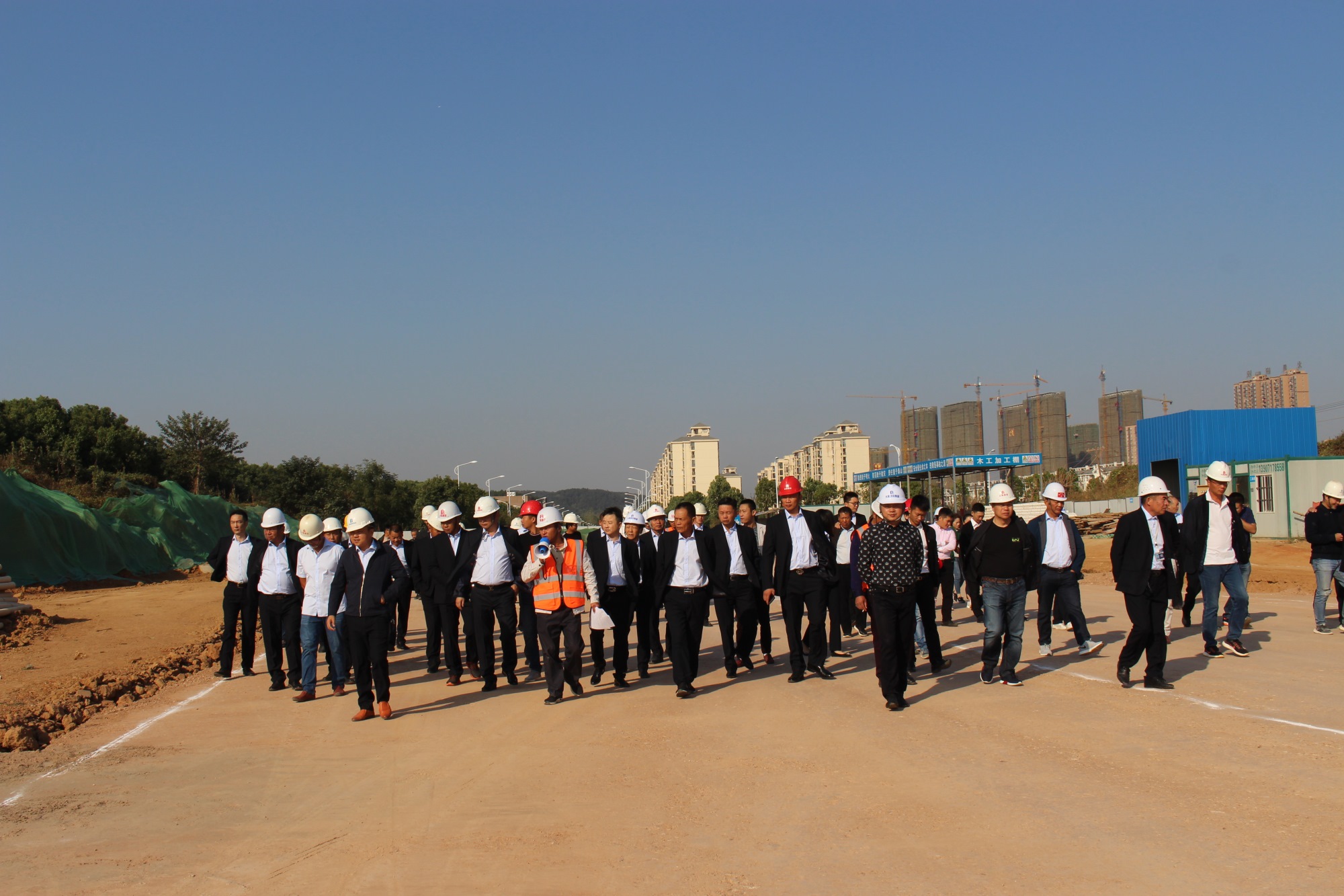上午,所有參會人員首先來到大沌南路項目施工現場進行參觀。在大沌南路項目負責人何廣州的帶領下,大家對大沌南路項目的工程概況、安全文明施工、新工藝、工程質量與進度管控等方面的情況進行了詳細地觀摩與學習。