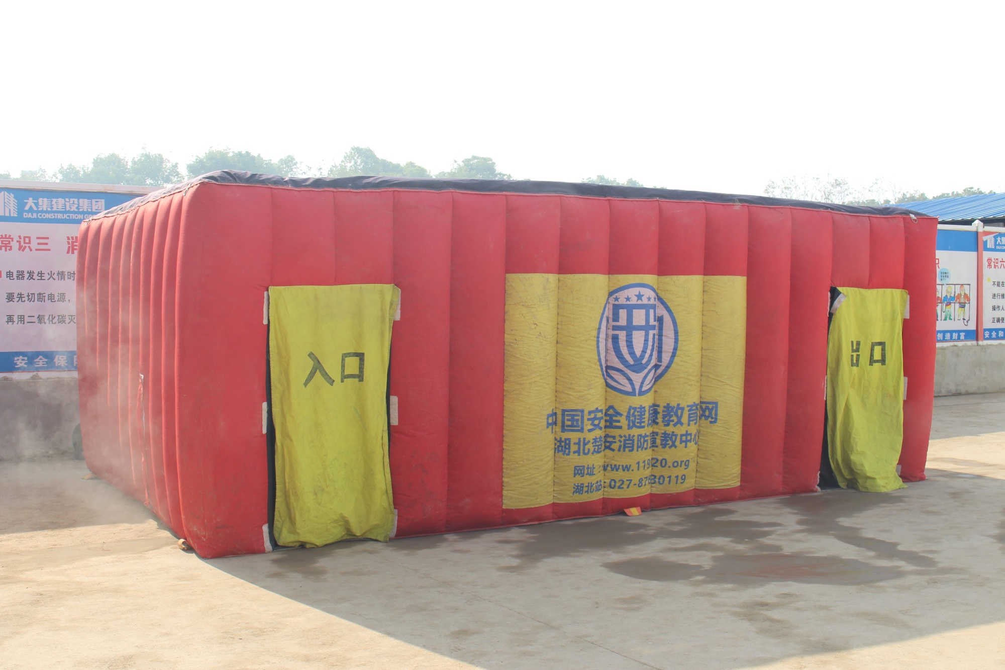 隨后,湖北楚安消防宣教中心王好主任帶領(lǐng)大家共同體驗了應(yīng)急帳篷,應(yīng)急帳篷模擬了火災(zāi)煙霧及火災(zāi)的陰暗環(huán)境,現(xiàn)場人員在王主任的指導下有秩序地進入帳篷進行體驗。
