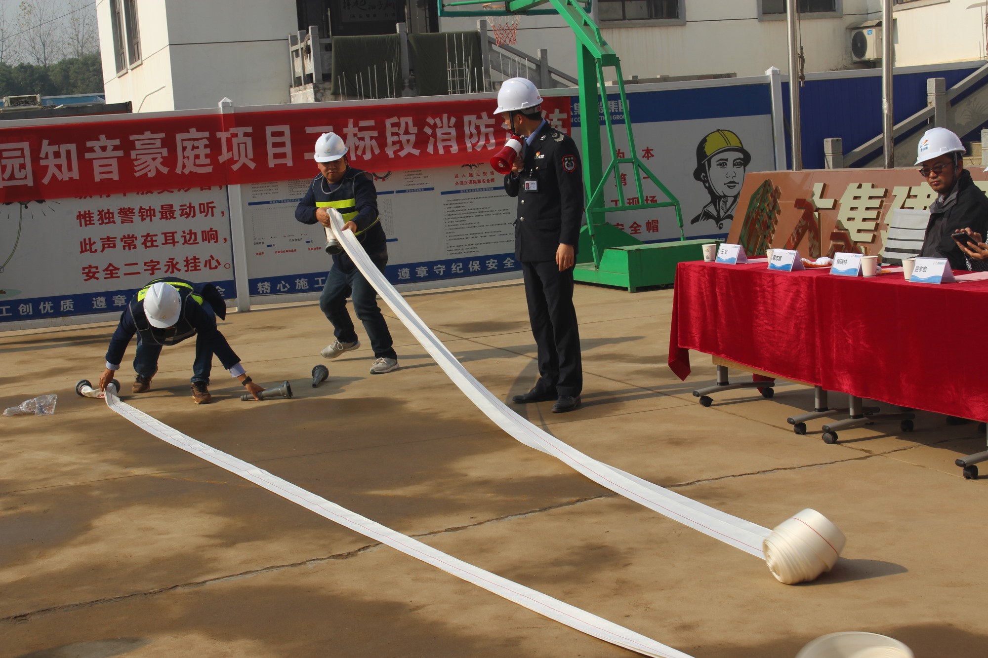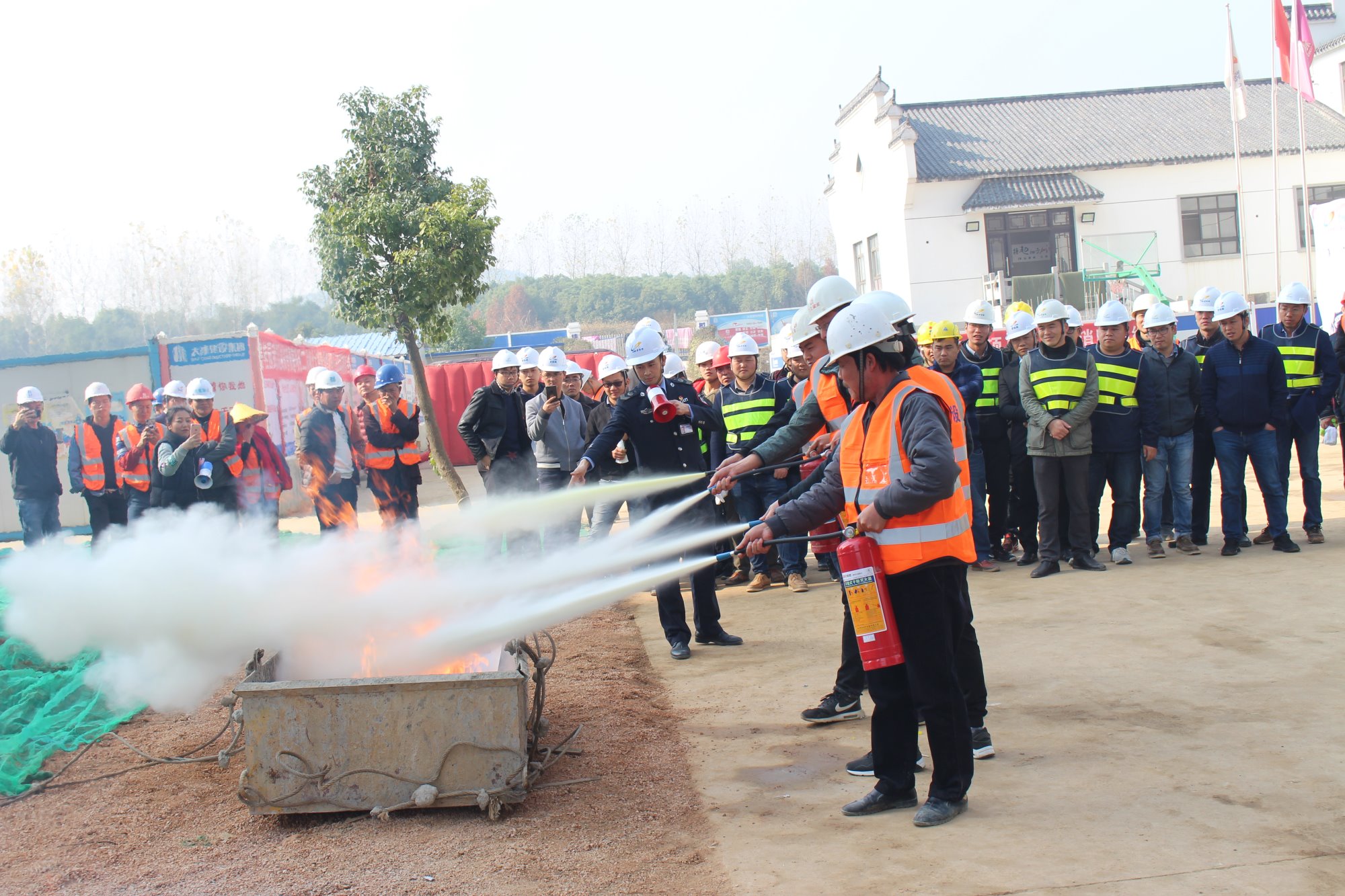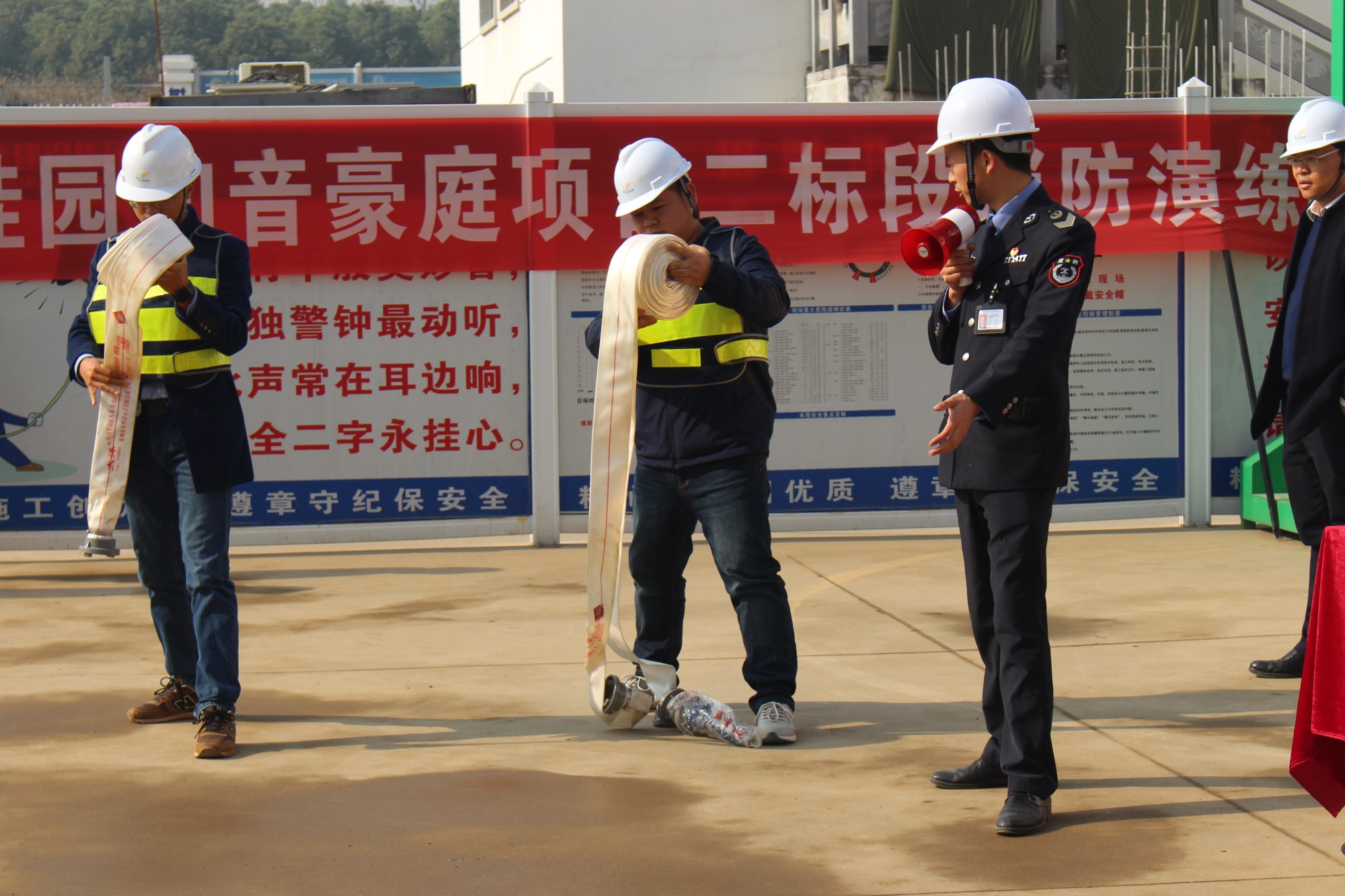 最后,王好主任為大家示范了滅火器的使用以及消防水帶的使用。他提到,滅火器是工程現(xiàn)場最常用的消防工具,滅火器使用過程中一定要確定火源完全撲滅,以防復燃情況發(fā)生。