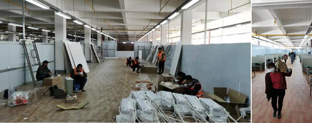 2月15日一早,在接到承建方艙醫(yī)院的緊急任務(wù)后,董事長徐濤火急召集全體項目經(jīng)理部署改建工作,進行現(xiàn)場勘測。由于本次任務(wù)很重,改造現(xiàn)場主要集中在3-5樓,包括護士站及病房共計12000多平,1600個床位,以及隔斷墻、廁所及配套設(shè)施。