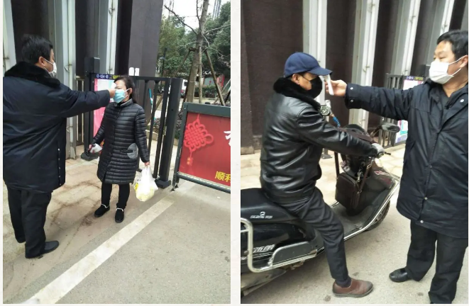 認(rèn)真對出入口人員進(jìn)行體溫檢測、信息登記