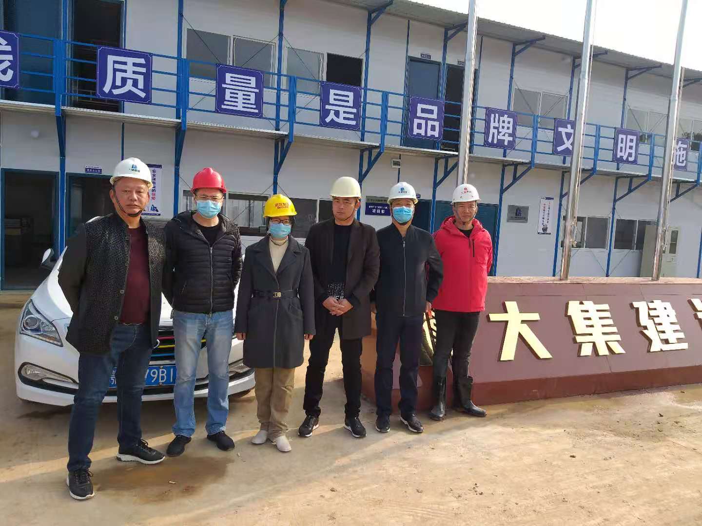 在大集G區(qū)蓮溪花園項目,徐副總一行首先在辦公區(qū)查看了工作環(huán)境,詳細了解目前項目的施工情況和進度,同時對項目現(xiàn)場安全防護、農民工宿舍等進行仔細檢查,并對項目安全、質量、進度和疫情防控工作給予充分肯定。