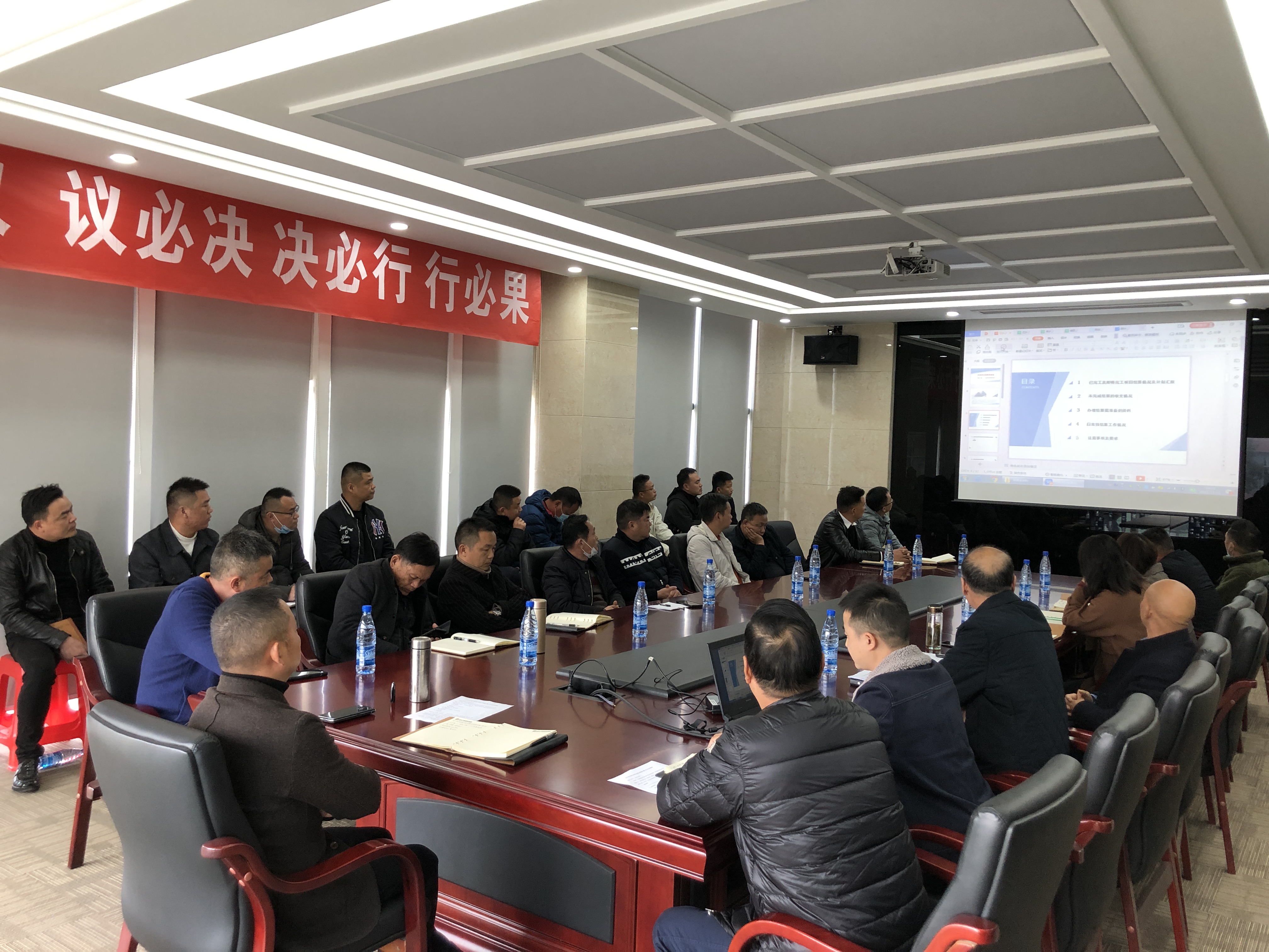 會上,財務(wù)部、工程部、招投標(biāo)部、物資供應(yīng)部及法務(wù)部部長分別就項目應(yīng)收應(yīng)付款項、項目完成產(chǎn)值及施工情況、已完工及即將完工項目結(jié)算情況、人材機(jī)合同款項支付時間節(jié)點(diǎn)、項目訴訟糾紛等事項進(jìn)行了匯報。