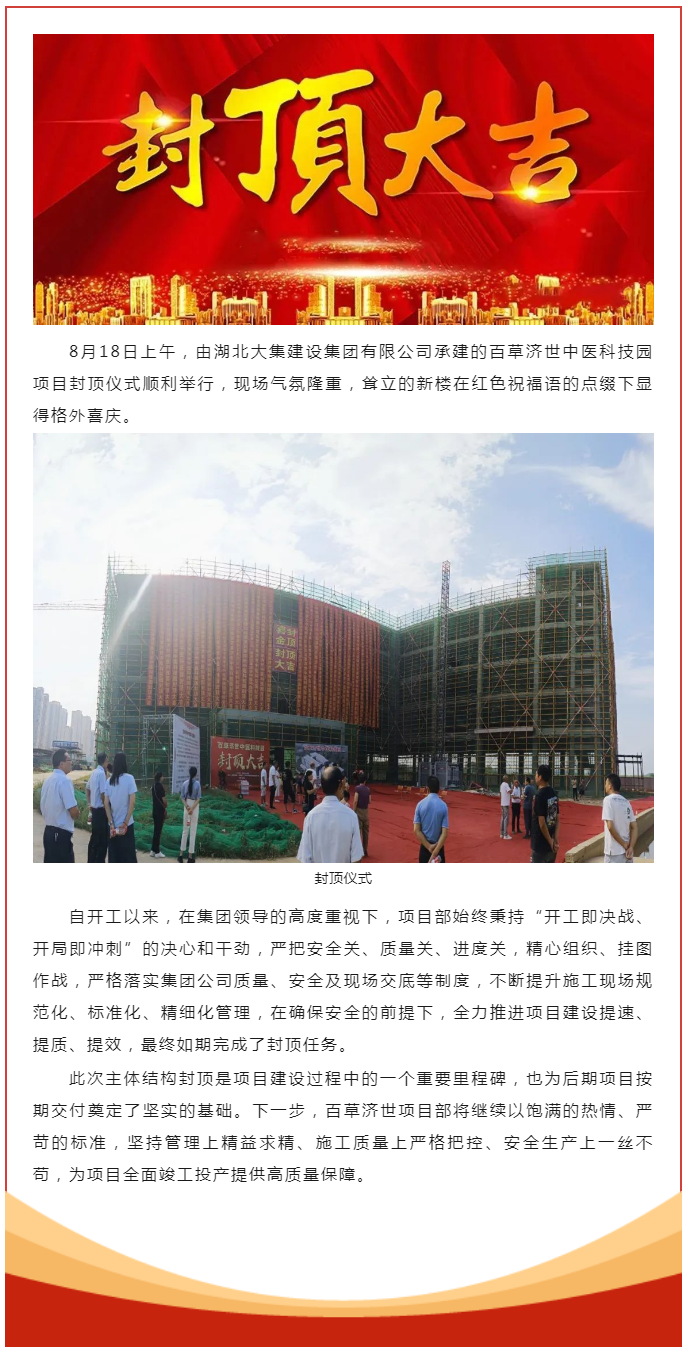 封頂大吉!百草濟世中醫(yī)科技園項目主體封頂