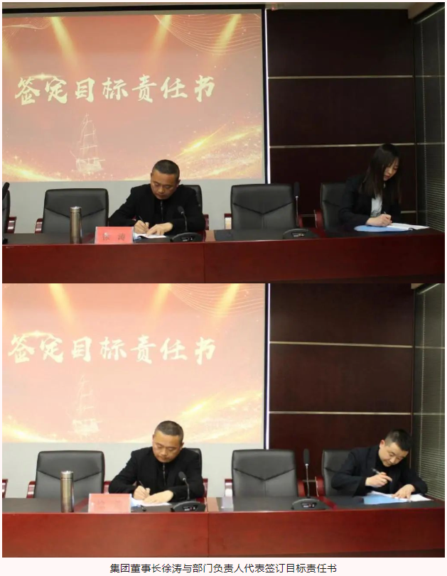 在2024年目標(biāo)責(zé)任書簽訂儀式上,集團(tuán)董事長、總經(jīng)理、副總經(jīng)理依次與部門負(fù)責(zé)人代表、項(xiàng)目代表簽訂目標(biāo)責(zé)任書。責(zé)任書不僅僅是一紙文件,它承載著集團(tuán)的期望與信任,代表著責(zé)任與擔(dān)當(dāng),猶如千鈞之重。