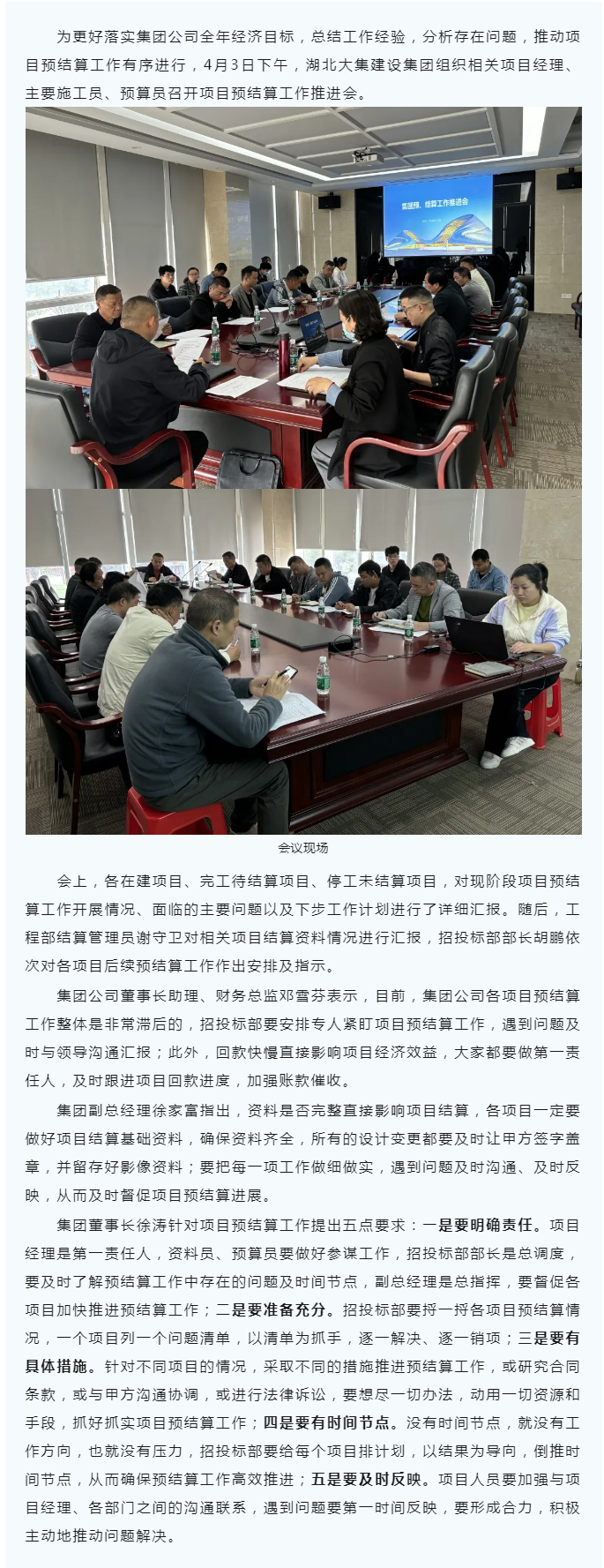 明思路 抓落實(shí)|湖北大集建設(shè)集團(tuán)召開項(xiàng)目預(yù)結(jié)算工作推進(jìn)會(huì)