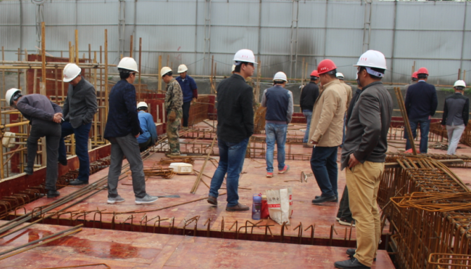 徐副總一行在新久集團項目經(jīng)理的帶領(lǐng)下,重點參觀了項目管理部、在建的地下室工程以及現(xiàn)場的施工管理作業(yè)。徐副總一邊認(rèn)真傾聽有關(guān)該項目的施工介紹,一邊與華中文谷的項目經(jīng)理做深入的溝通交流,不時提出自己的意見和看法,尤其對現(xiàn)場的施工管理工作做重點探討;各位項目經(jīng)理、施工員認(rèn)真觀摩,就現(xiàn)場施工的具體問題與新久集團的施工隊伍相互交流意見,相互討論學(xué)習(xí),現(xiàn)場一片和樂融融,互學(xué)互問的熱烈氛圍!