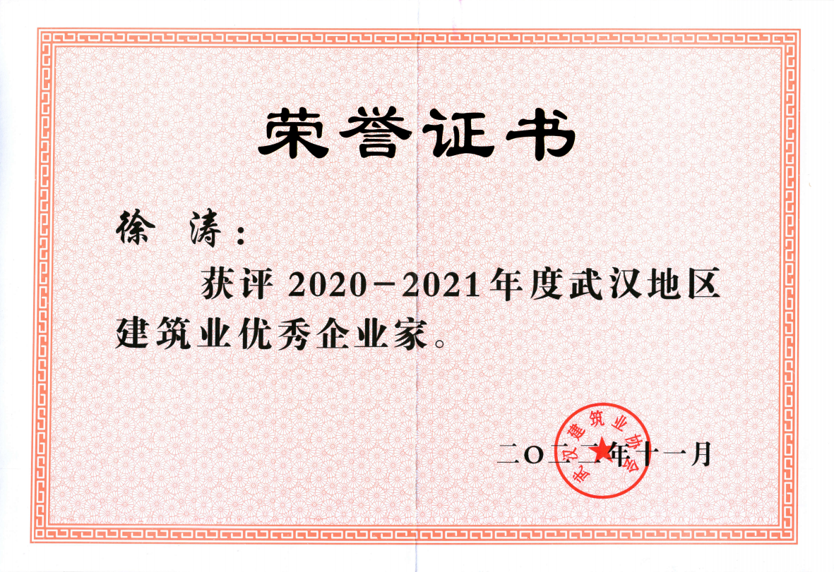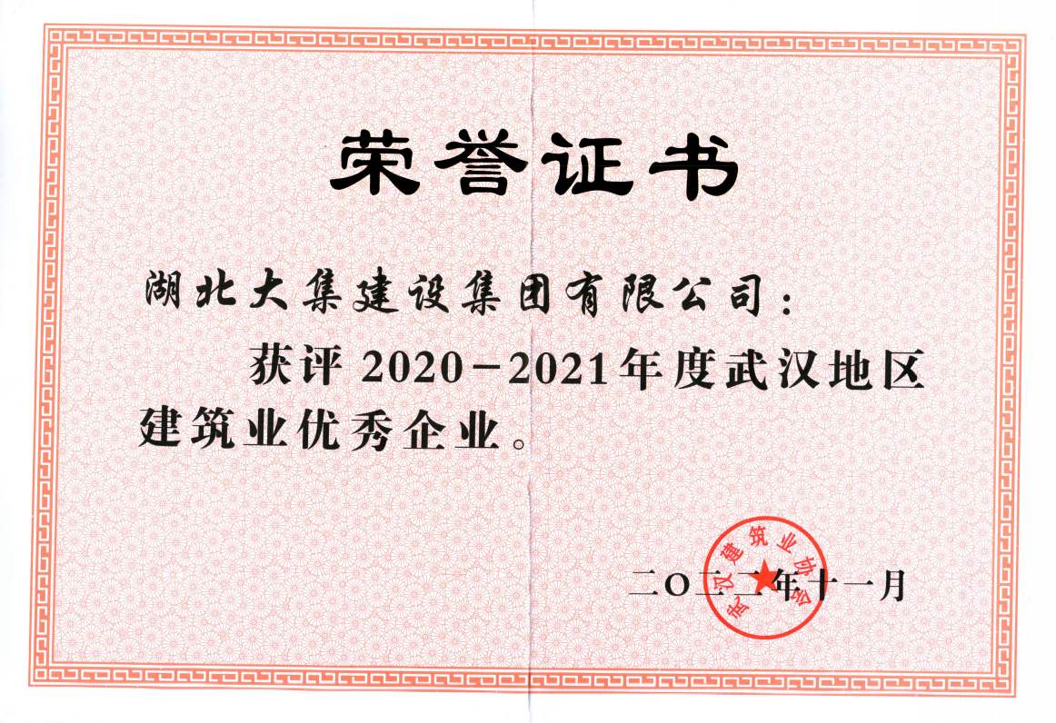 近日,武漢建筑業(yè)協(xié)會發(fā)布2020-2021年度武漢地區(qū)建筑業(yè)“四優(yōu)”選樹結(jié)果。湖北大集建設(shè)集團(tuán)憑借優(yōu)秀的綜合實力和扎實的管理水平,公司獲評“武漢地區(qū)建筑業(yè)優(yōu)秀企業(yè)”榮譽(yù),公司董事長徐濤榮獲“武漢地區(qū)建筑業(yè)優(yōu)秀企業(yè)家”稱號。