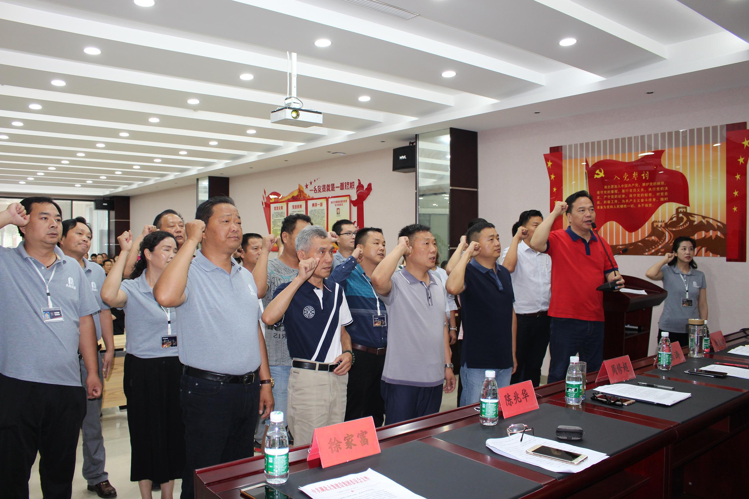 在慷慨激昂的大合唱《沒有共產(chǎn)黨就沒有新中國》中,會議拉開了序幕,熱血沸騰的歌聲結(jié)束后,由集團(tuán)黨委副書記徐遠(yuǎn)征同志帶領(lǐng)新黨員做入黨宣誓,老黨員重溫入黨誓詞。