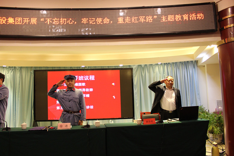 在雄壯的國歌聲中,湖北大集建設(shè)集團(tuán)“不忘初心,牢記使命,重走紅軍路”主題教育活動(dòng)開班儀式正式拉開帷幕。