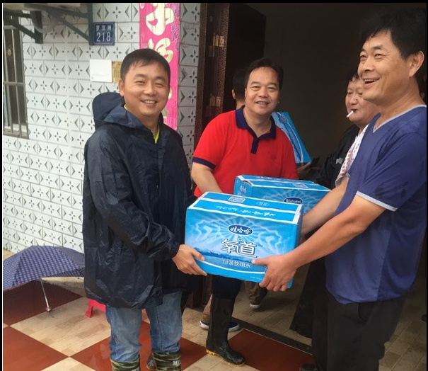 “天災(zāi)無(wú)情,人間有愛(ài)”。2016年7月19日,湖北大集建設(shè)集團(tuán)有限公司在董事長(zhǎng)徐濤和總經(jīng)理徐遠(yuǎn)征率領(lǐng)下,副總經(jīng)理徐家富、項(xiàng)目經(jīng)理徐斌、梁前松等公司領(lǐng)導(dǎo)和骨干力量代表集團(tuán)公司的心意冒雨來(lái)到了受災(zāi)嚴(yán)重的蔡甸區(qū)沉湖大堤。