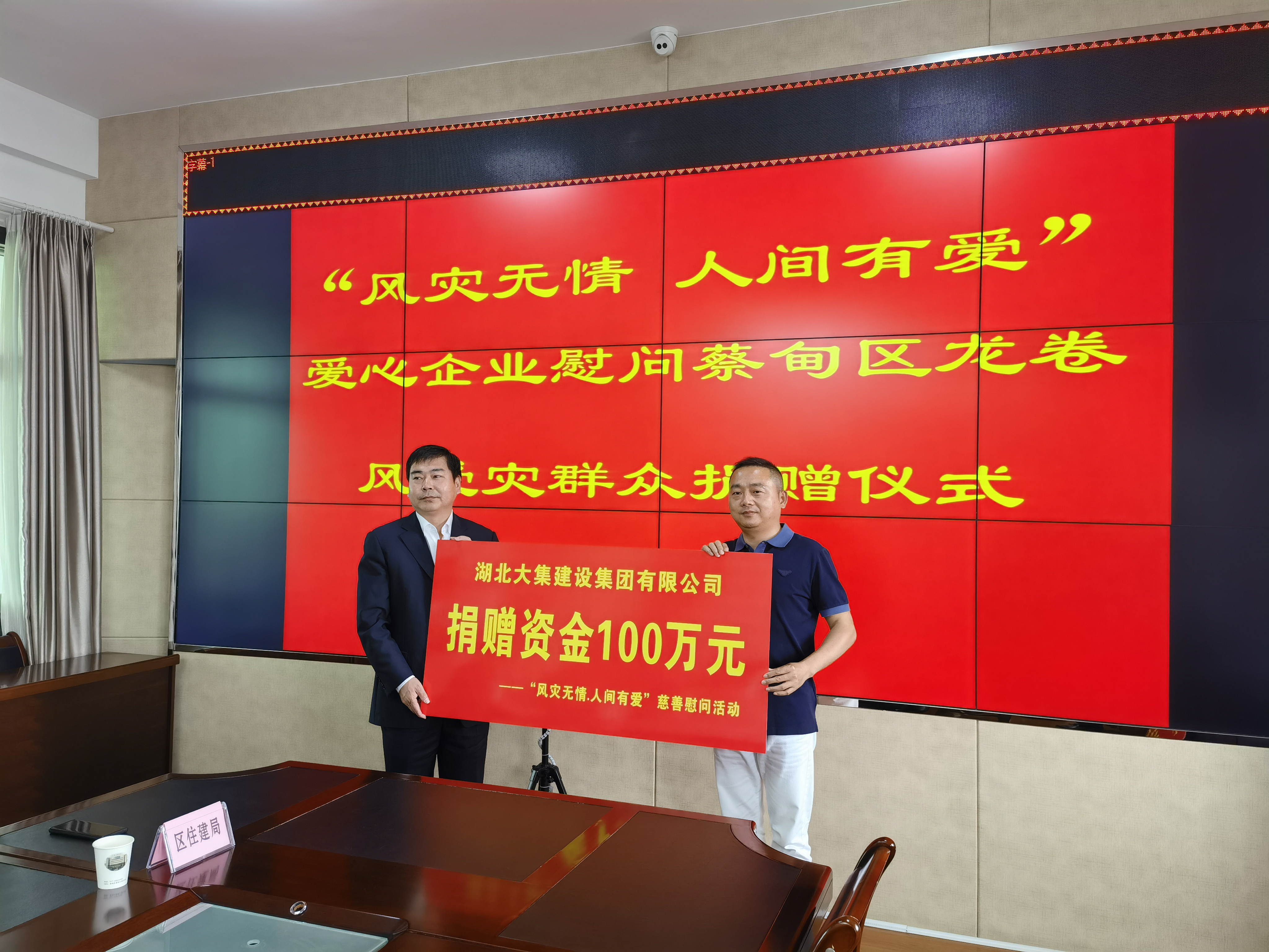 獲悉災害發(fā)生后,集團公司董事長徐濤當即表示:“災情就是命令,災情就是責任,我們必須盡快行動,盡到企業(yè)的一份責任?!辈⒌谝粫r間響應政府號召,代表集團公司向蔡甸區(qū)龍卷風受災群眾捐贈資金100萬元,充分體現(xiàn)了集團公司的使命擔當。
